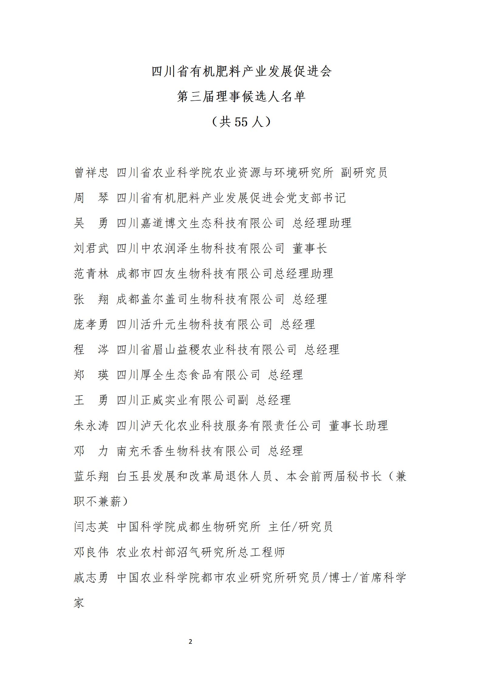 四川省有机肥料产业发展促进会第三届理事、监事及负责人候选人名单公示